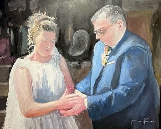 Mi enfoque en el Live Art se basa en la conexión emocional. A través de pinceladas rápidas pero precisas, logro plasmar la esencia de la pareja y la atmósfera única de su celebración. Cada obra es un diálogo entre el arte y el corazón, donde la pasión por pintar se fusiona con la emoción del momento.