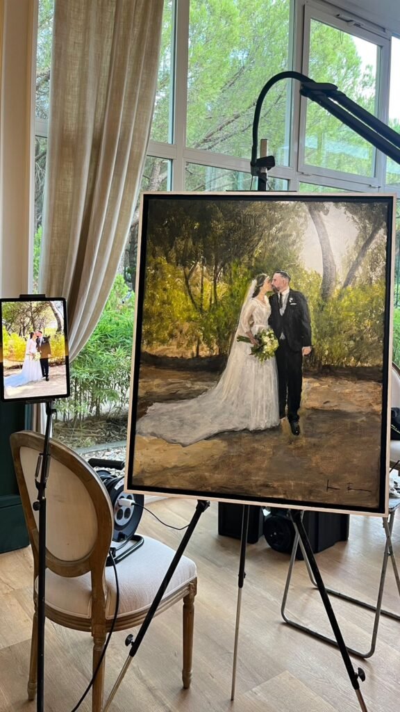 Regalar un cuadro pintado en vivo durante una boda es ofrecer algo irrepetible: una pieza de arte que no solo decora, sino que también cuenta una historia, evoca sentimientos y se convierte en un legado para generaciones futuras. Es el regalo perfecto para recordar que el amor, como el arte, es eterno.
